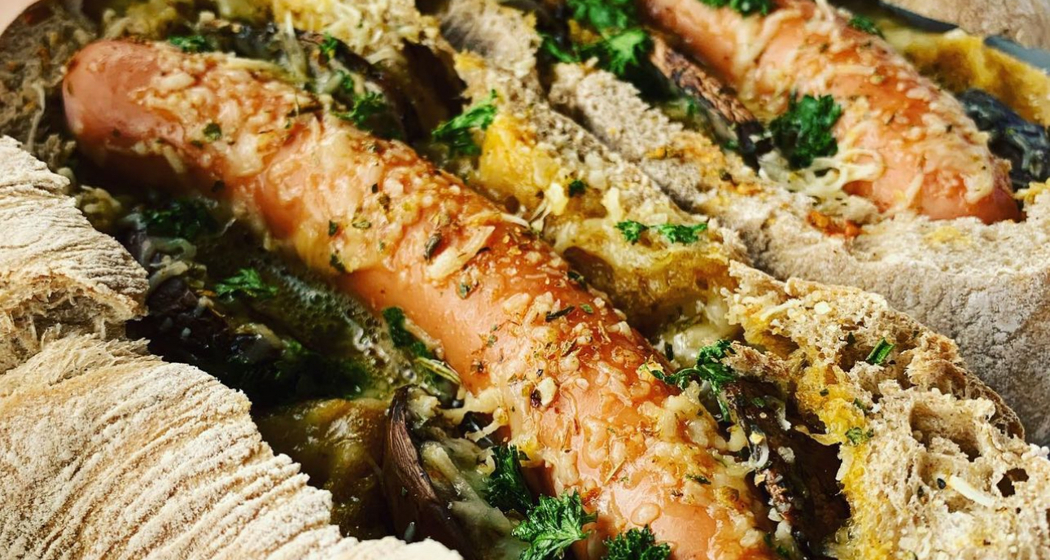 Beim Baguette einen Deckel abschneiden das Brot aushöhlen.