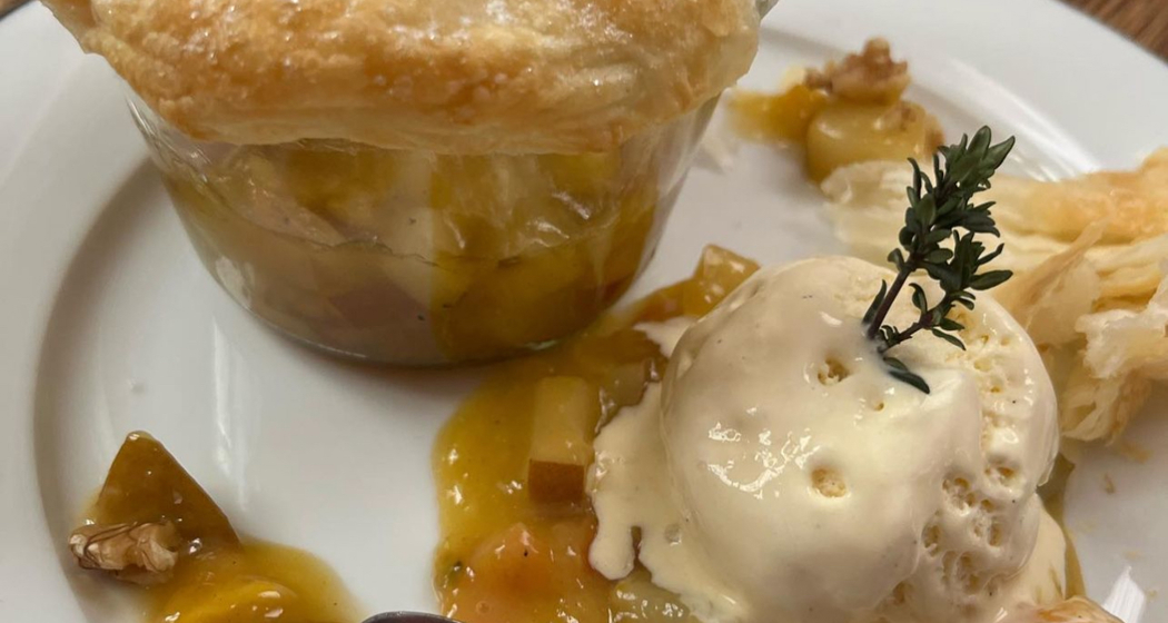 Puddingpulver und 4 Esslöffel Wasser verrühren, Saft damit binden. Kurz aufkochen und in 4 ofenfeste Becher oder Schälchen füllen. Blätterteig so ausschneiden, dass der Durchmesser etwas größer ist als der Förmchen.