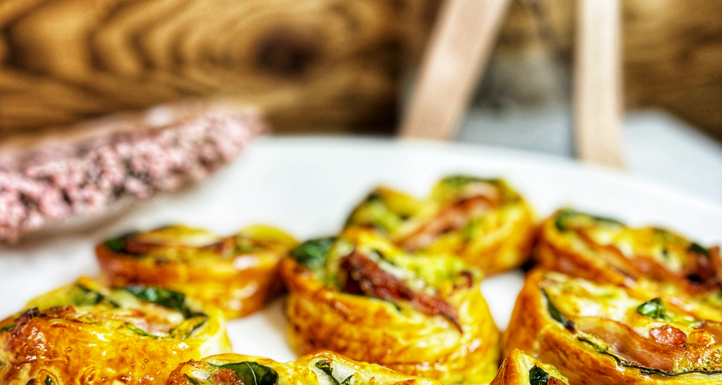 Blätterteig ausrollen, Spinat, Brokkolimasse und Speck verteilen.
