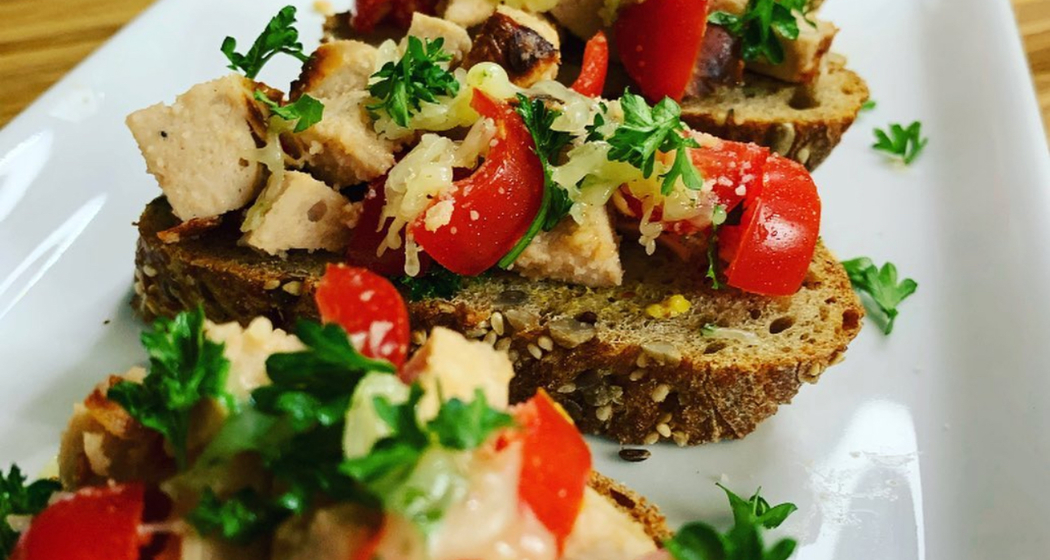 Bratwurst ( meine war gegrillt,sonst grillen) in kleine Stücke schneiden so wie auch die Cherrytomaten und den Peterli. Alles in eine Schüssel geben mit Salz&Pfeffer abschmecken, den Reibkäse dazu mischen,