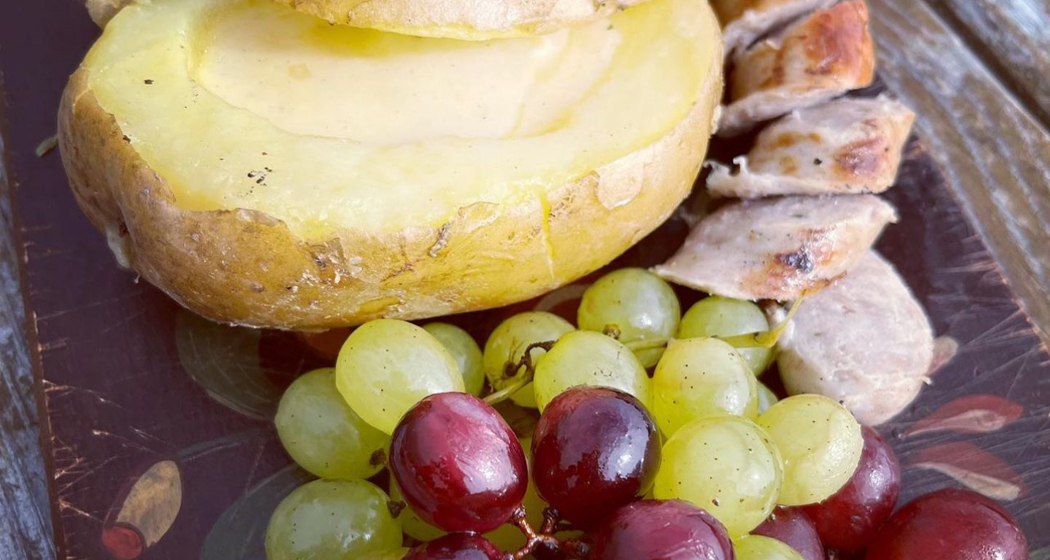 Das Loch mit Fondue-Käse füllen, Deckel darauf, mit Salz&Pfeffer würzen und in Alufolie und für nochmals 20 Minuten auf den Grill geben. Im Backofen ohne Alufolie bei 180 Grad Umluft backen