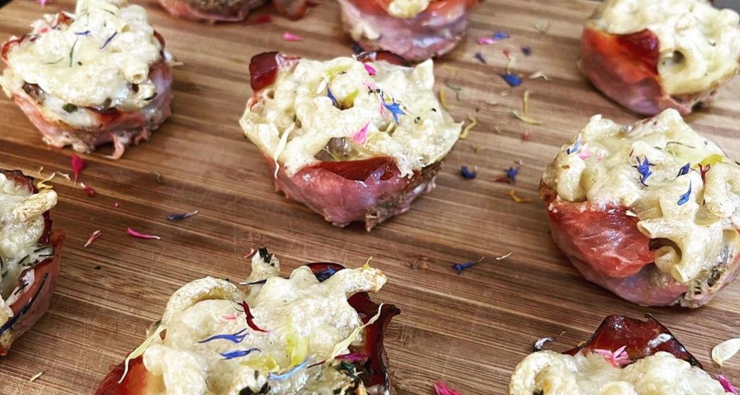 Muffinform mit Öl bestreichen. Bauernschinken halbieren und die Form belegen.