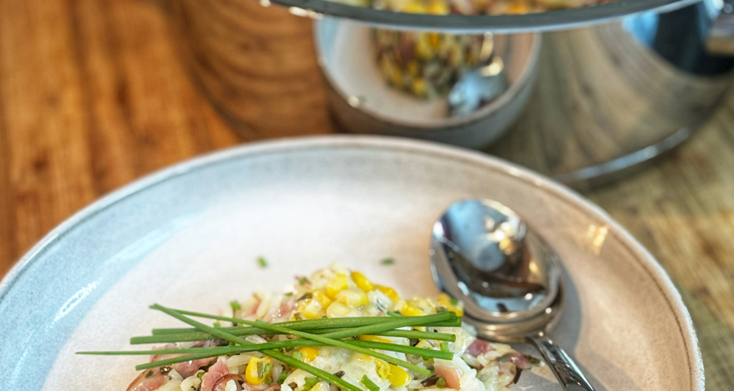Topf 24cm 3,5 l, auf den Navigenio stellen, auf A einstellen. Alle Zutaten bis auf Schnittlauch und Butter dazugeben, umrühren. Mit dem Secuquick verschliessen, Audiotherm auf 8 Minuten einstellen, Soft. Von alleine drucklos werden lassen.