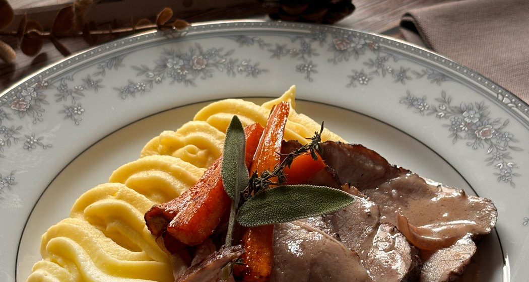 Zarter Braten, cremiger Kartoffelstock und eine aromatische Salbeisauce treffen auf süss-herzhafte Karotten. Ein einfaches, aber raffiniertes Gericht, das Wärme und Genuss verbindet. Perfekt für jeden Anlass!