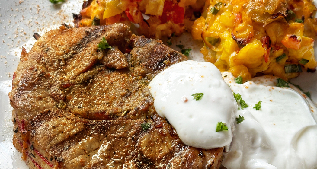 Ober-/ Unterhitze für 20 Minuten backen. In dieser Zeit die Steaks auf den Grill geben und je nach Garstufe brutzeln lassen. Ich habe noch bisschen Crème fraîche dazu serviert was das würzige Steak und die süsse vom Mais wundervoll abrundet.