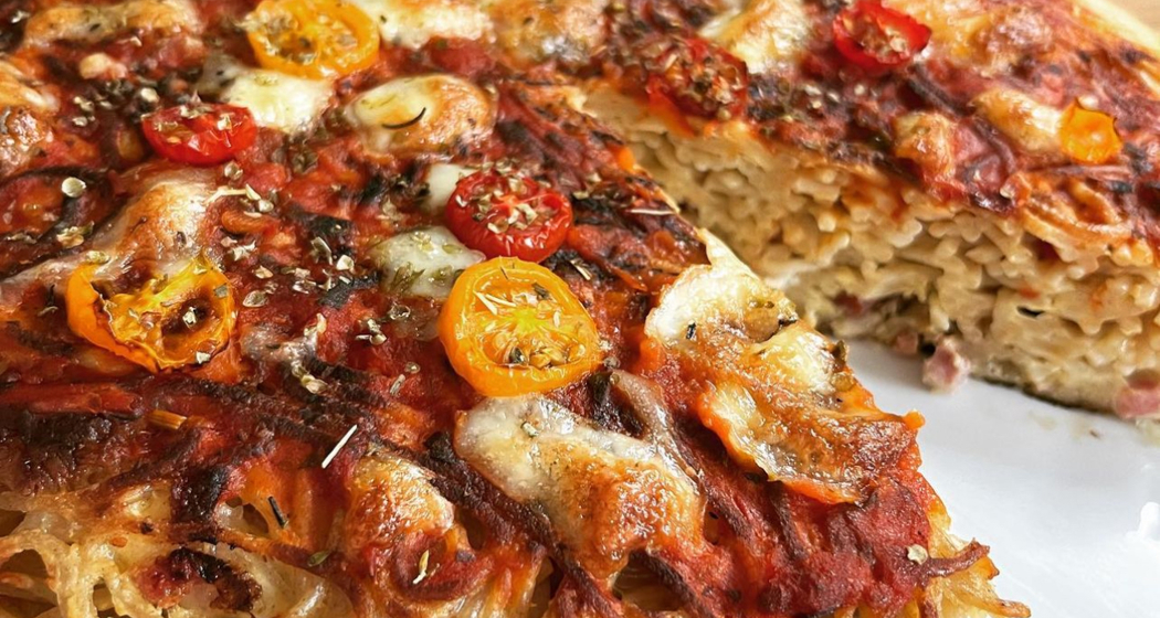 In einer Bratpfanne den Butter erhitzen und die Spaghetti wie eine Rösti von beiden Seiten braten dann auf ein mit Backpapier belegtes Blech legen mit etwas Tomatensauce bestreichen und mit Mozzarelline und Cherrytomaten belegen alles für 20 Minuten bei 180 Grad Umluft in Backofen backen.