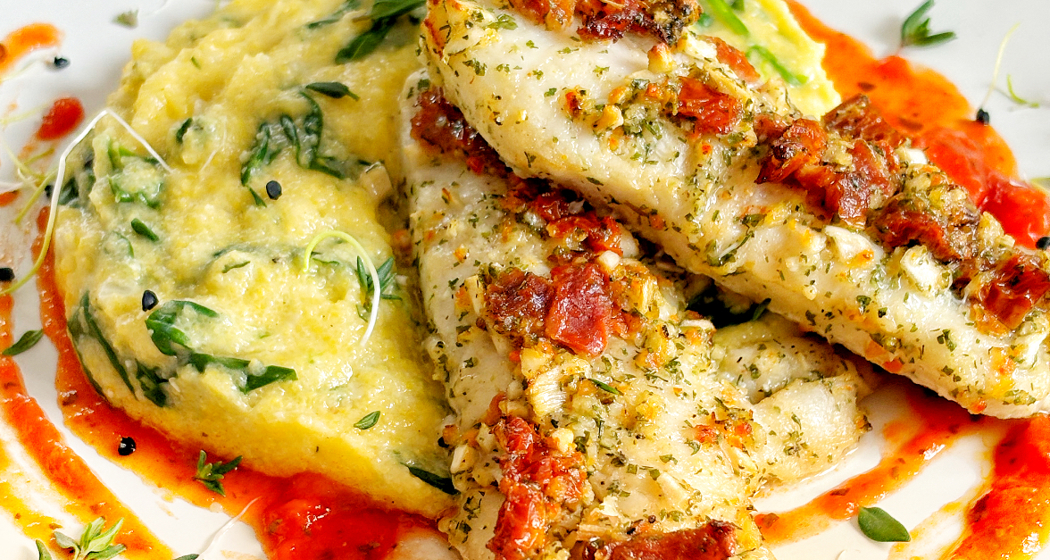 Knoblauch schälen und fein hacken. Tomaten klein schneiden. Knoblauch, Tomaten, Kräuter, Öl, Zitronensaft und Salz&Pfeffer in eine Schüssel geben, verrühren die Filets